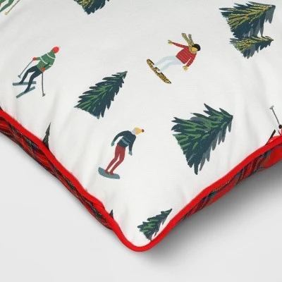 Add classic touch and wintry fun to your holiday decor with the Reversible Skiing to Plaid Square Throw Pillow from Wondershop™. This red and white square pillow features a plaid pattern on one side and trees and skiing graphics on the other side for a lovely look. Made from soft fabric, this reversible throw pillow makes a beautiful accent piece on your sofa, couch or any other spot. Simply add a coordinating snowflake throw pillow to complete the look of the space.