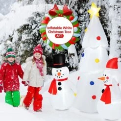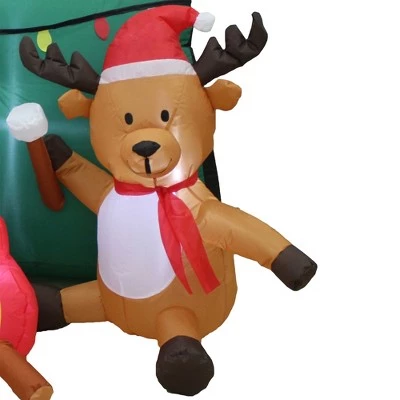 Bring some extra winter fun to your front yard when Santa’s forest friends come to roast marshmallows this holiday season with this Inflatable Snowman & Reindeer Pal Holiday Decoration from A Holiday Company. Spread holiday cheer to your neighbors, friends, and family with this light-up Snowman and his reindeer pal around a cozy campfire. The ideal gift for a woodland and forest connoisseur, this decoration features brightly colored friends ready to celebrate the festive season. Easy to set up, the inflatable does all the hard work for you. All you have to do is simply plug in, securely stake down, and watch as Santa Claus self-inflates into a life-size display within seconds. Equipped with bright LED lights, this Santa brings extra sparkle to your holiday home decor. Crafted from a super durable, weather-resistant material, this lawn decoration is meant to last season after season. Sharing the holiday season together with loved ones is the greatest gift of all. Cherish the moment a little longer and a little more with the A Holiday Company 6 Ft Wide Inflatable Snowman & Reindeer Pal Holiday Decoration for indoor and outdoor use.