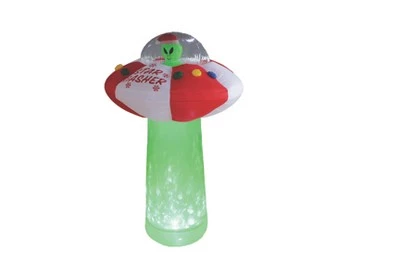 Get ready to take off to a faraway galaxy with our 7ft tall UFO Inflatable Christmas decoration! This fun and festive piece features an adorable alien inside the cockpit, wearing a cozy Santa hat to get in the holiday spirit. The UFO is adorned with the words “Star Dasher” on its sides and has a green tractor beam that adds a playful touch to your holiday décor. Whether you’re a fan of sci-fi or just looking for a unique and whimsical addition to your Christmas display, this UFO with an alien pilot is sure to delight visitors of all ages. So beam up some holiday cheer with our Star Dasher UFO!