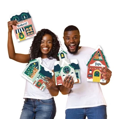 Holiday or Christmas Party Lawn Decorations INCLUDES: 8 coordinating Christmas Village yard decorations: 1 – Large “Happy Holidays” Christmas Tree Shape, 1 – Cape Cod House Shape, 1 – Bakery Shape, 1 – Post Office Shape, 1 – Library Shape, 1 – Toy Shop Shape, 1 – Church Shape, 1 – Colonial House Shape, and 16 stakes for displaying. Easy assembly instructions are also included. PERFECT FOR ANY LOCATION! Christmas Village Yard Signs SIZE: Large “Happy Holidays” Christmas Tree Shape – 16.5″ x 21.5″, Cape Cod House Shape – 9.5″ x 12″, Bakery Shape – 7.5″ x 10″, Post Office Shape – 9.5″ x 8.75″, Library Shape – 10.5″ x 9.5″, Toy Shop Shape – 8″ x 13.5″, Church Shape – 6″ x 13.5″, and Colonial House Shape – 7.75″ x 12″. Holiday Winter Village yard decor is an easy way to decorate for your Holiday or Christmas Party. Both adults and kids will love these Christmas Village party supplies. EASY TO USE: Christmas Village Yard Sign & Outdoor Lawn Decorations are professionally printed and cut, making assembly quick and easy. Simply insert two heavy-duty stakes into each Holiday Winter Village yard ornament and press into the ground to display. HIGH-QUALITY YARD DECORATIONS: Holiday Winter Village Yard Signs are professionally printed on durable, corrugated plastic. 8-Piece yard decorations are waterproof and can be used outdoors. Christmas Village lawn decor can be displayed in wind, snow, and rain without any worry. MADE IN THE USA: Christmas Village Yard Sign & Outdoor Lawn Decorations are designed and manufactured at our Wisconsin facility using materials that are Made in the USA.