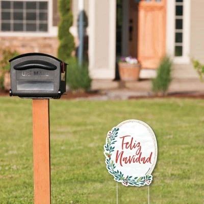 Feliz Navidad Yard Sign INCLUDES: 1 weather resistant plastic sign and 2 sturdy metal stakes for displaying. Show your neighbors and pedestrians when you add this eye-catching sign to your property. PERFECT FOR ANY LOCATION! This 1-piece yard sign SIZE 10.75 inches wide x 13.75 inches tall is the ideal height to display in the front yard of your home. If displayed outdoors, yard sign rules and regulations vary from city and state, we recommend checking your local guidelines. EASY TO USE: Feliz Navidad Lawn Sign is professionally printed and cut, making assembly quick and easy. Simply insert the included two heavy-duty metal stakes into the sign and press into the ground to display. HIGH-QUALITY YARD DECORATION: Feliz Navidad Yard Sign is professionally printed on durable, corrugated plastic. Hispanic Christmas yard sign is waterproof and can be used outdoors – displayed in wind, snow, and rain without any worry. MADE IN THE USA: Feliz Navidad Yard Sign is designed and manufactured at our Wisconsin facility using materials that are Made in the USA.