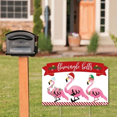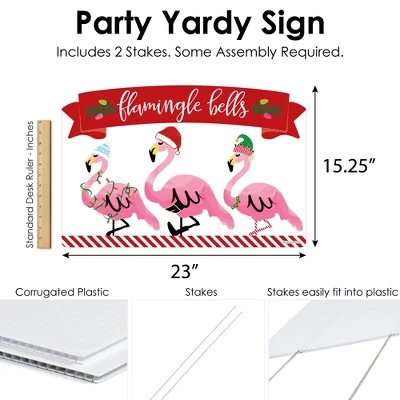 Flamingle Bells Party Yardy Sign INCLUDES 1 weather resistant plastic sign and 2 sturdy stakes for displaying. Create goose bump moments, those memories to last a lifetime, when you display Flamingle Bells yard sign with stakes. OUTDOOR LAWN DECOR: This tropical Christmas yard sign lawn decoration MEASURES 23 inches wide x 15.25 inches tall. The perfect size to stake into the ground, creating an eye-catching display at your home, business, or party venue. If displayed outdoors, yard sign rules and regulations vary from city and state, we recommend checking your local guidelines. EASY TO USE YARD SIGN: Flamingle Bells outdoor yard sign is professionally printed and cut, making assembly quick and easy. Simply insert two heavy-duty stakes into Flamingle Bells yard ornament and press firmly into the ground to display. Easy assembly instructions are included. HIGH-QUALITY YARD DECORATION: Flamingle Bells yard sign decoration is professionally printed on durable, corrugated plastic. Tropical Christmas party Yard Sign Lawn Decoration is waterproof and can be used outdoors – displayed in wind, snow, and rain without any worry. MADE IN THE USA: Flamingle Bells yard sign is designed and manufactured at our Wisconsin facility using materials that are Made in the USA. If displayed outdoors, yard sign rules and regulations vary from city and state, we recommend checking your local guidelines.