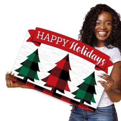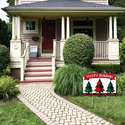Holiday Plaid Trees Party Yardy Sign INCLUDES 1 weather resistant plastic sign and 2 sturdy stakes for displaying. Create goose bump moments, those memories to last a lifetime, when you display Happy Holidays yard sign with stakes. OUTDOOR LAWN DECOR: This Buffalo Plaid Christmas yard sign lawn decoration MEASURES 23 inches wide x 15.25 inches tall. The perfect size to stake into the ground, creating an eye-catching display at your home, business, or party venue. If displayed outdoors, yard sign rules and regulations vary from city and state, we recommend checking your local guidelines. EASY TO USE YARD SIGN: Holiday Plaid Trees outdoor yard sign is professionally printed and cut, making assembly quick and easy. Simply insert two heavy-duty stakes into Holiday Plaid Trees yard ornament and press firmly into the ground to display. Easy assembly instructions are included. HIGH-QUALITY YARD DECORATION: Holiday Plaid Trees yard sign decoration is professionally printed on durable, corrugated plastic. Buffalo Plaid Christmas party Yard Sign Lawn Decoration is waterproof and can be used outdoors – displayed in wind, snow, and rain without any worry. MADE IN THE USA: Holiday Plaid Trees yard sign is designed and manufactured at our Wisconsin facility using materials that are Made in the USA. If displayed outdoors, yard sign rules and regulations vary from city and state, we recommend checking your local guidelines.