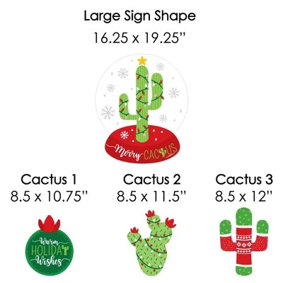 Christmas Cactus Lawn Decorations INCLUDES 8 coordinating Merry Cactus yard decorations: 1 Large Merry Cactus, 2 Cactus #1, 2 Cactus #2, 3 Cactus #3, and 16 stakes for displaying. Easy assembly instructions are also included. PERFECT FOR ANY LOCATION! Merry Cactus Yard Signs SIZE Large Merry Cactus 16.25″ x 19.25″; Cactus #1, 8.5 x 10.75″; Cactus #2, 8.5″ x 11.5″; Cactus #3, 8.5″ x 12″. Cactus yard decor is an easy way to decorate your home or business for Christmas cactus party. Both adults and kids will love these fiesta party supplies. EASY TO USE: Cactus – Yard Sign & Outdoor Lawn Decorations are professionally printed and cut, making assembly quick and easy. Simply insert two heavy-duty stakes into each cactus yard ornament and press into the ground to display. HIGH-QUALITY YARD DECORATIONS: Cactus Holiday Yard Signs are professionally printed on durable, corrugated plastic. 8-Piece yard decorations are waterproof and can be used outdoors. Holiday Cactus lawn decor can be displayed in wind, snow and rain without any worry. MADE IN THE USA: Merry Cactus – Yard Sign & Outdoor Lawn Decorations are designed and manufactured at our Wisconsin facility using materials that are Made in the USA.
