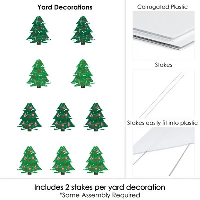 Outdoor Merry Christmas Lawn Decorations INCLUDE: 10 coordinating Snowy Christmas Trees yard decorations: 3 – Christmas Tree Shape 1, 2 – Christmas Tree Shape 2, 3 – Christmas Tree Shape 3, 2 – Christmas Tree Shape 4, and 20 sturdy stakes for displaying. PERFECT FOR ANY LOCATION! Snowy Christmas Trees Yard Signs SIZE: All 10 Christmas Tree Shapes – 9.75 inches x 12.5 inches. Vibrant Merry Christmas yard decor is an easy way to decorate a Holiday or Christmas Party. Both adults and kids will love these Merry Christmas party supplies. Display in front yards of your home or party venue. EASY TO USE: Snowy Christmas Trees Lawn Decorations are professionally printed and cut, making assembly quick and easy. Simply insert two heavy-duty stakes into each yard ornament and press into the ground to display. HIGH-QUALITY YARD DECORATIONS: Snowy Christmas Trees – Lawn Yard Signs are professionally printed on durable, corrugated plastic. 10-Piece yard decorations are waterproof and can be used outdoors. Merry Christmas lawn decor can be displayed in wind, snow, and rain without any worry. MADE IN THE USA: Snowy Christmas Trees – Lawn Decorations – Outdoor Holiday or Christmas Party Yard Decorations are designed and manufactured at our Wisconsin facility using materials that are Made in America.