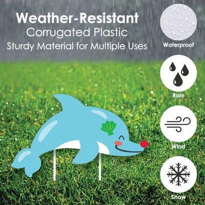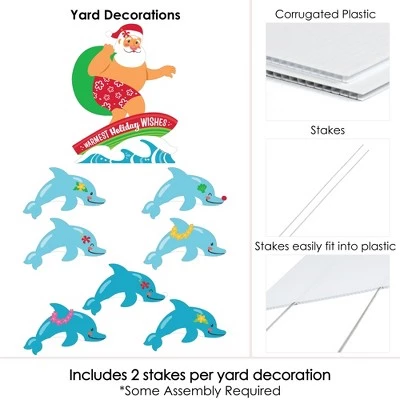 Holiday or Christmas Party Lawn Decorations INCLUDES: 8 coordinating Tropical Christmas yard decorations: 1 – Large “Warmest Holiday Wishes” Santa Claus Shape, 7- Dolphin Shapes, and 16 stakes for displaying. Easy assembly instructions are also included. PERFECT FOR ANY LOCATION! Tropical Christmas Yard Signs SIZE: Large “Warmest Holiday Wishes” Santa Claus Shape – 16.75″ x 22″, Dolphin Shapes – 13″ x 8.25″. Beach Santa Claus yard decor is an easy way to decorate for your Holiday or Christmas Party. Both adults and kids will love these Tropical Christmas party supplies. EASY TO USE: Tropical Christmas Yard Sign & Outdoor Lawn Decorations are professionally printed and cut, making assembly quick and easy. Simply insert two heavy-duty stakes into each Beach Santa Claus yard ornament and press into the ground to display. HIGH-QUALITY YARD DECORATIONS: Beach Santa Claus Yard Signs are professionally printed on durable, corrugated plastic. 8-Piece yard decorations are waterproof and can be used outdoors. Tropical Christmas lawn decor can be displayed in wind, snow, and rain without any worry. MADE IN THE USA: Tropical Christmas Yard Sign & Outdoor Lawn Decorations are designed and manufactured at our Wisconsin facility using materials that are Made in the USA.