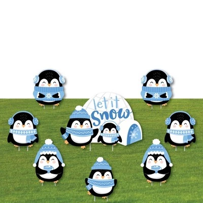Holiday or Christmas Party Lawn Decorations INCLUDES: 8 coordinating Winter Penguins yard decorations: 1 – Large “Let It Snow” Igloo Shape, 7 – Small Penguin Shapes, and 16 stakes for displaying. *Some Assembly Required – Stakes easily fit into plastic PERFECT FOR ANY LOCATION! Winter Penguins Yard Signs SIZE: Large “Let It Snow” Igloo Shape 4 (23″ x 16″), Penguin Shape 1 (9” x 11.75”), Penguin Shape 2 (8.75” x 10.25”), Penguin Shape 3 (9” x 10.5”) and Penguin Shape 5 (9” x 12.5”). Blue Snowflake & Igloo yard decor is an easy way to decorate for your Holiday or Christmas Party. Both adults and kids will love these Winter Penguins party supplies. *Includes 2 Stakes per yard decoration EASY TO USE: Winter Penguins Yard Sign & Outdoor Lawn Decorations are professionally printed on corrugated Plastic (Sturdy Material for multiple Uses) and cut. * Some Assembly Required, Stkae easily fit into plastic, making assembly quick and easy. Simply insert two heavy-duty stakes into each Blue Themed yard ornament and press into the ground to display. HIGH-QUALITY YARD DECORATIONS: Penguin Party Yard Signs are professionally printed on durable, corrugated plastic. 8-Piece yard decorations are waterproof and can be used outdoors. Winter Penguins lawn decor can be displayed in wind, snow, and rain without any worry. MADE IN THE USA: Winter Penguins Yard Sign & Outdoor Lawn Decorations are designed and manufactured at our Wisconsin facility using materials that are Made in the USA.