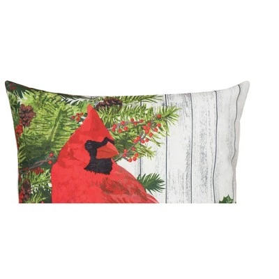 Is there anything more peaceful than enjoying a vibrant cardinal perched outside your window? Designed in collaboration with licensed mother/son duo, Two Can Art, this digitally printed pillow features a charming cardinal perched among evergreens and berries. Fade resistant this pillow is crafted with a soft woven polyester cover and plush polyfill for quick drying. The Christmas Bird pillow sits comfortably both indoors and out bringing the perfect finishing touch to your holiday decor. Filled and finished in the USA.