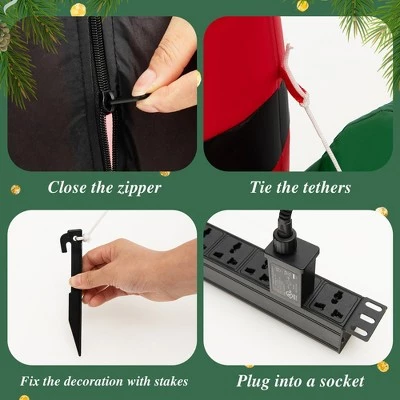 - Quick Inflation & Easy Installation: This inflatable Santa Claus can be inflated in no time thanks to the high-quality air blower and automatic self-inflation system. You can use the 2 ropes and 4 ground stakes included to fix the decoration to the ground. Besides, there are 2 sandbags inside Santa Claus, which is helpful in adding stability.