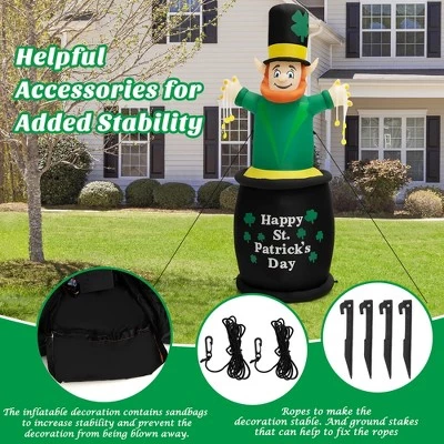 - Full Range of Accessories & Durable Material: Our inflatable leprechaun comes with ground stakes or tethers, could effectively prevent the decoration from falling down. Besides, the durable polyester fabric also has good weather resistance and water resistance for long-time use.