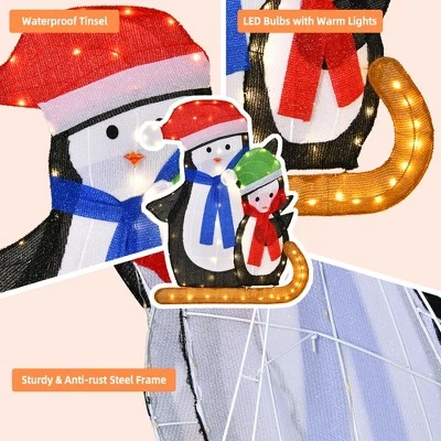 - Perfect Christmas Decoration: Designed with Santa hats and scarves, these lighted penguins with attractive sled make a great additional in your home decoration. In addition, the image of penguins creates a festive atmosphere during Christmas while bringing joy to your family and friends.