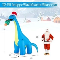 Costway 10 ft Christmas Inflatable Dinosaur, Christmas Lighted Green Dinosaur Bite Gift