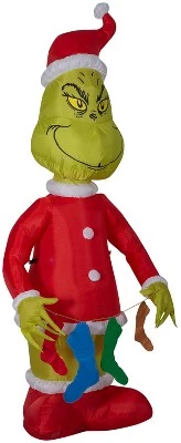 The Grinch Grinch Christmas Airblown Inflatable Holding String of Stockings, 6.5 ft Tall, Red