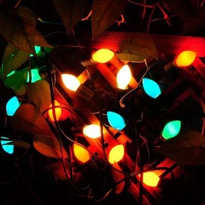 Decorate your yard with our 25 Multicolor LED C7 Green Wire String Lights. The strong construction makes the string lights tough and sturdy, and waterproof. Ideal decoration for deck railing, garden, balcony, bistro, pergola, canopy, tent, market, porch, pool gazebo, rooftops, and outdoor umbrellas.