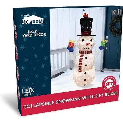 - Our own unique Snowman holding gift boxes design of Christmas Yard Light is easy to set up. These are pre-wired frames and very durable. Perfect for indoor/outdoor use.