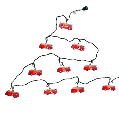 This Kurt Adler 10-Light Fire Truck Light Set is a fun, unique way to add to the lighting of your holiday or theme party décor! Each of the 10 lights in this novelty indoor/outdoor light set features a wonderfully detailed red fire truck design. Each truck measures about 3.5″ in width, 1.5″ in height, and 1.5″ in depth. Each set has a 30″ lead wire, 12″ spacing, 12V 0.08A clear miniature bulbs, 4 spare bulbs, and 1 spare fuse.