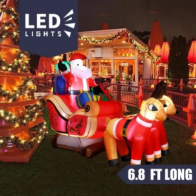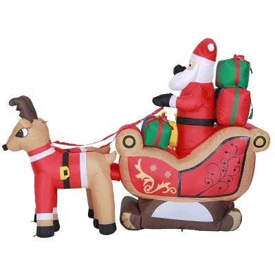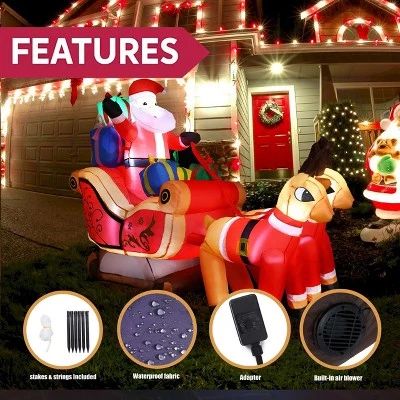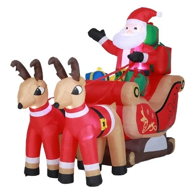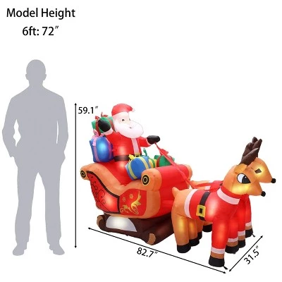 - Santa and his sleigh inflatable makes a great centerpiece of holiday photos and a festive decoration to your winter wonderland