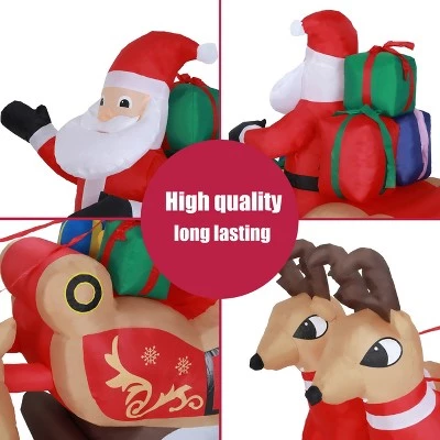 - The Santa and sleigh inflatable is made of high strength weather resistant polyester, which protects against rips and tears, while the excellent stitching improves the durability of the inflatable decoration
