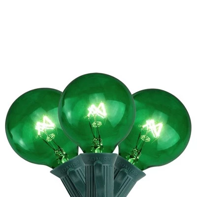 Illuminate your holiday season with the mesmerizing radiance of our green G50 globe holiday lights. These enchanting lights will transform your surroundings into a winter wonderland. Each globe radiates a warm and inviting green glow, creating a cozy and festive atmosphere that will captivate both young and old. Whether adorning your holiday tree or accentuating your outdoor decor, these lights add a touch of magic to any space. Embrace the spirit of the season and let the luminous beauty of our G50 globe holiday lights bring joy and cheer to your celebrations. Product Features: Color: green bulbs / green wire Number of bulbs on string: 10Bulb size: G50Bulb type: incandescentE12 baseSpacing between each bulb: 12″Lighted length: 9’Total length: 10’6″ lead cord6″ tail cordAdditional Product Features: Each light has a clip on its base so you can easily attach them to your tree or other desired surfacesFully assembledBulbs easily screw in and outIf one bulb burns out, the rest will stay lit Contains end-to-end connectors which allow you to connect multiple lighted items together (not to exceed 210 watts) Connect up to 6 sets end to endUL certified and approved for indoor or outdoor use Wire gauge: 20Wattage: 70Material(s): plastic/wire