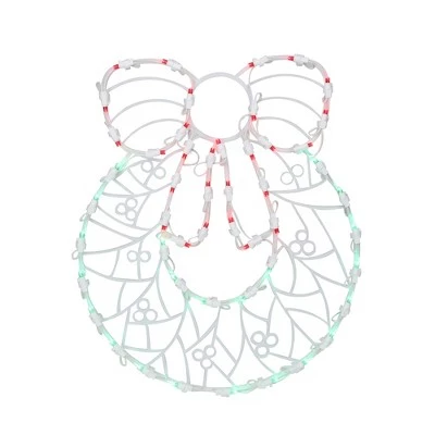 Add a touch of winter wonder to your holiday decor with our LED lighted holiday wreath window silhouette. This enchanting wreath silhouette will transform any window into a festive focal point. The warm, inviting glow of the lights will create a cozy atmosphere, perfect for celebrating the season with friends and family. Product Features:Color: green and red bulbs/white wire Number of bulbs: 50 Bulb size: mini concave wide angle24″ white lead cord Double sided design Fully assembled:suction cup includedAdditional product features: Super bright bulbsCool to the touch LED lights use 90% less energy UL certified and approved for indoor and outdoor useIf one bulb burns out, the rest will stay litComes with replacement bulbs and spare fuseContains 1 plug with end connector which allows you to stack multiple lighted items together (not to exceed 210 watts)Wire gauge: 22120 volts, 60 hertz, .15 amps, 1.5 wattsDimensions: 16″H x 13″W x 0.75″DMaterial(s): plastic bulbs/wire