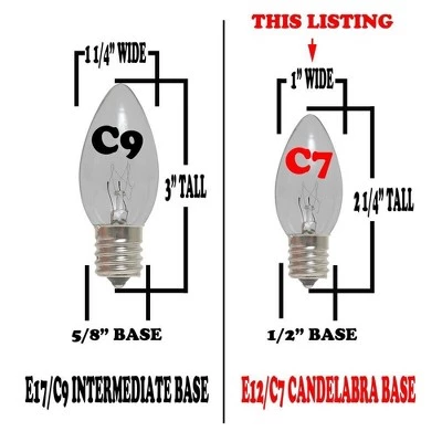 - Each C7 bulb is 5 watts with a 3,000 hour bulb life and made with a E12 candelabra nickel base