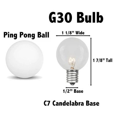 - G30 incandescent candelabra base bulbs with 25 socket commercial grade light string set