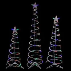 Northlight Set of 3 LED Lighted Multi-Color Outdoor Spiral Christmas Cone Trees 3′, 4′, and 6′