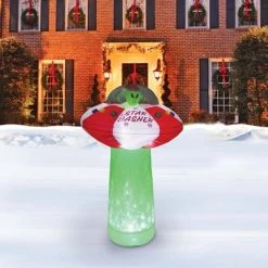 A Holiday Company 7ft Tall Star Dasher UFO with Green Shimmer Light, 7 ft Tall, Multi