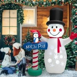 Costway 6 FT Inflatable Snowman & Penguin Guidepost Christmas Decoration with Snowflake