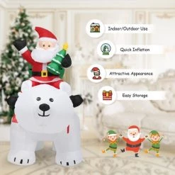 Costway 6.5 FT Christmas Inflatable Santa Riding Polar Bear w/ Shaking Head LED Lights