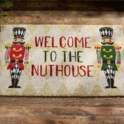 For a festive update to your front or back porch try adding a seasonal doormat. This natural coir welcome mat features two majestic Nutcracker soldiers standing either side of the statement, “Welcome to the Nuthouse”. The mat has thick and durable coir fibers that are perfect for trapping dirt as family and guests enter your home.