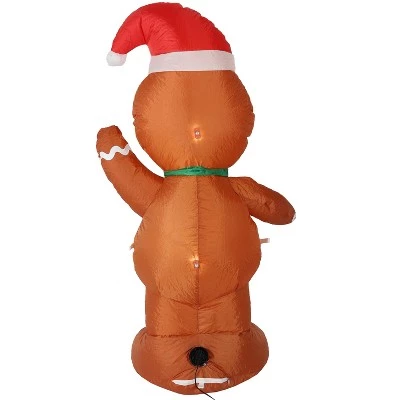 - • 4-FOOT CHRISTMAS BLOW-UP: This holiday inflatable yard decoration is a festive accent for any Christmas celebration. The blow-up gingerbread man measures 28.5″ W x 14.5″ D x 50.5″ H and weighs 1.8 lbs. The power cord is 79″ L.