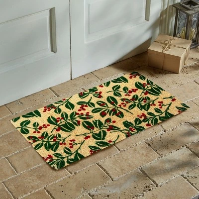 - This Holiday Berries coir Multi Renewable Coconut Fiber doormat Christmas Xmas Holiday is made of coir – a natural, renewable material extracted from coconut husk which is easy to maintain. This ecofriendly production process creates fade resistant patterns such as this design.