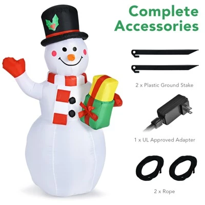 - Sweet & Complete Accessories: There are a adapter, 2 stakes, 2 ropes and a blower in the package. 2 ground stakes and 2 ropes can help you fix the snowman for better stability. Air blower is good for fast and effective inflation. All these accessories will bring you a lot of convenience in installation.