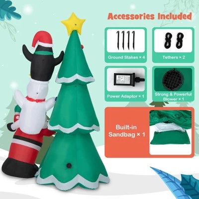 - Adorable Inflatable Decorations: This Christmas inflatable decoration includes an 8-feet tall Christmas tree. And next to the Christmas tree is the classic Santa Claus, a penguin with a Christmas hat and a cute snow man. It’s perfect for decorating a room or patio during the Christmas season, which will bring Christmas atmosphere to your family!
