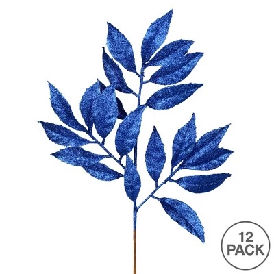 Vickerman 21″ Glitter Bay Leaf Aritificial Christmas Spray. This sparkling spray is made of durable Plastic, has wired petals and stem for easy shaping, and is glitter accented. Includes 12 pieces per pack.