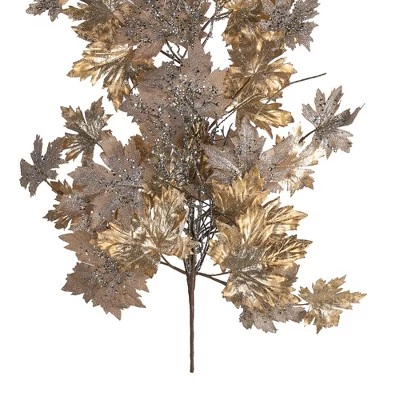 Vickerman Champagne Maple Leaf Artificial Series. This item is the perfect addition for any holiday. The maple leaves feature metallic and glitter accents.