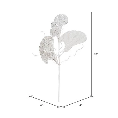Vickerman 20″ Fiddle Leaf Glitter Aritificial Christmas Spray. This spray features a mix of mesh and eye-catching glitter accented foliage. This beautiful spray is made of durable polyester, and has a paper wrapped wire stem. Includes 3 pieces per bag.